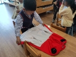子栋:自己的事情自己做,我会自己叠衣服、穿鞋子、穿袜子、收玩具,当然我还会帮助老师一起拔草呢。