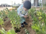 来到小四班的菜地里,幼儿先前种下的蚕豆长大了许多。
