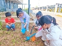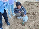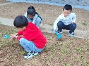 找一片田野,借着播种的时间,中二班幼儿开展了小菜地的播种活动。