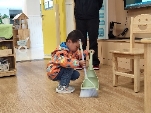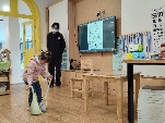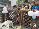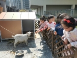 园内有一处饲养角,居住着一群动物朋友,这天,大班幼儿成为园所饲养员,开展饲养活动,对小羊、鸡、鸭进行照料,从打扫圈舍开始,让饲养处焕然一新,然后给这些动物朋友添粮加水等。