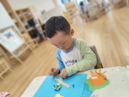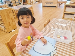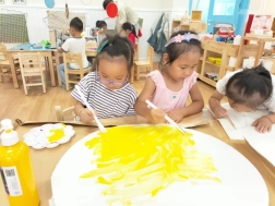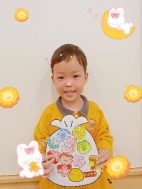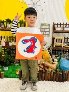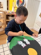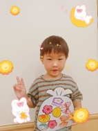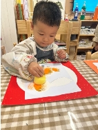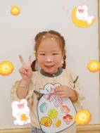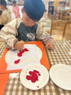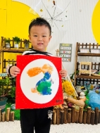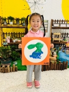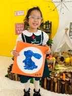 萌萌:“我用手指蘸颜料印出了小兔子的耳朵和小尾巴。”