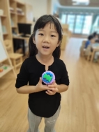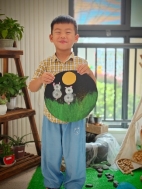 婉儿:那就让我们把作品放在一起吧!我想做月饼,上面有一只兔子拿着国旗,奔上太空。