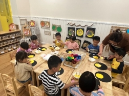 下午材料准备好后,老师向大家介绍了制作步骤,开始做月饼喽!