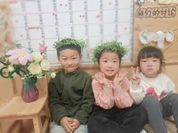 瞧,宝贝们还把春天编织成了美丽的花环,他们把花环送给了小朋友们。