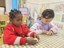 忱忱:你把纸塞进订书机的大嘴巴,然后用力按下去就行了,就这样。说着忱忱拿过来安安的纸指挥操作起来。