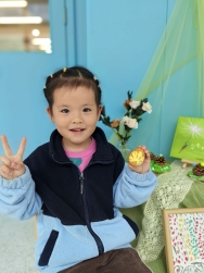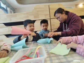 大家都对自己的春饼非常满意,纷纷向老师展示自己的春饼。