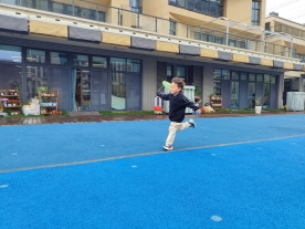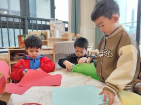 风筝完成,孩子们带着自己的风筝到操场上放飞,小小的手举起一个个彩色的风筝,在操场上肆意奔跑,跑出一串串银铃般的笑。