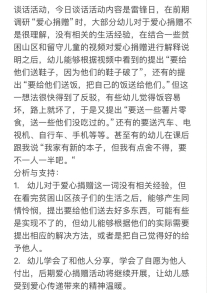 爱心捐赠是一件很有意义的活动,能让幼儿感受到爱心传递带来的精神温暖。大一班的孩子们在兴致勃勃地讨论着关于捐赠的话题。