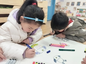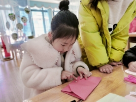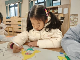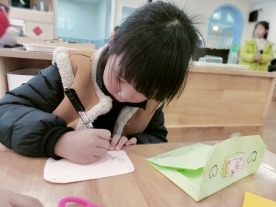 大二班的孩子们精心制作着那份充满爱的书信,把想说的话传递给被捐赠的孩子们。