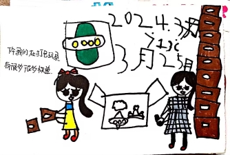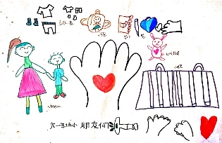 精心地打包完后,孩子们有很多话想说,他们用绘画表达着自己的心情与感受。