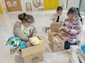 在一个阳光明媚的下午,大班的孩子们忙碌而有序地打包着捐赠物资。他们的脸上洋溢着快乐与期待,因为每一份打包好地物资都代表着他们的一份爱心,即将传递给远方需要帮助的小伙伴们。