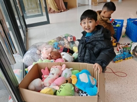 全园爱心捐赠开始啦!大家有序地捐赠着物品,脸上的笑容也显得格外灿烂!