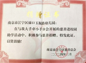 南京江宁慈善总会——“大手牵小手”分会为慷慨捐赠物资的小朋友颁发了一份充满爱心的荣誉证书。这些可爱的幼儿们用自己微小的力量,传递出了温暖和关爱,让人们深深地感受到了他们纯真而美好的内心世界。